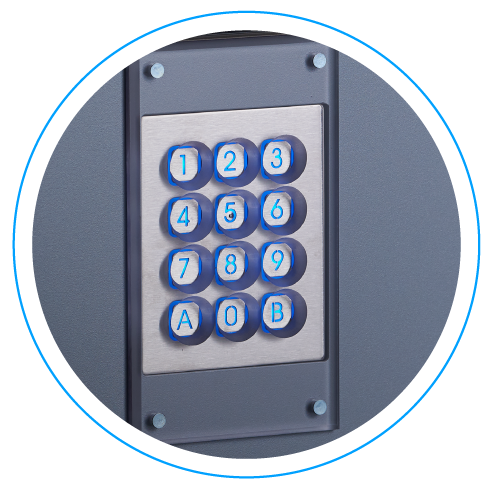 The 5 mm lexan panel protects the keyboard and prevents tampering.